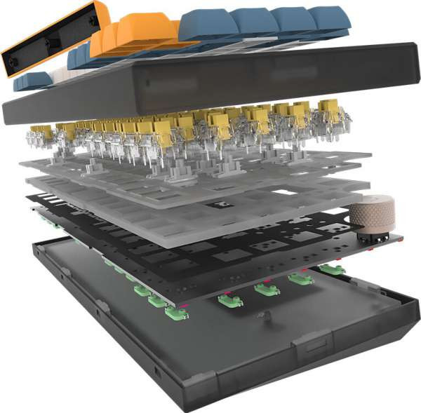 Компания оснастила LIBERTAS высококачественными трехцветными колпачками PBT с двойным напылением, обеспечивающими улучшенные тактильные ощущения при наборе текста. Эти колпачки не только прочны, но и устойчивы к выцветанию, что обеспечивает долговременную разборчивость и эстетичность. Кроме того, в комплект поставки клавиатуры входят 15 тактильных переключателей, 12 дополнительных колпачков, один дополнительный голубоватый регулятор громкости, элегантная пылезащитная крышка и кисточка с несколькими инструментами, что позволяет пользователям изменять внешний вид клавиатуры и легко ухаживать за ней, обеспечивая тем самым как функциональность, так и индивидуальный стиль.