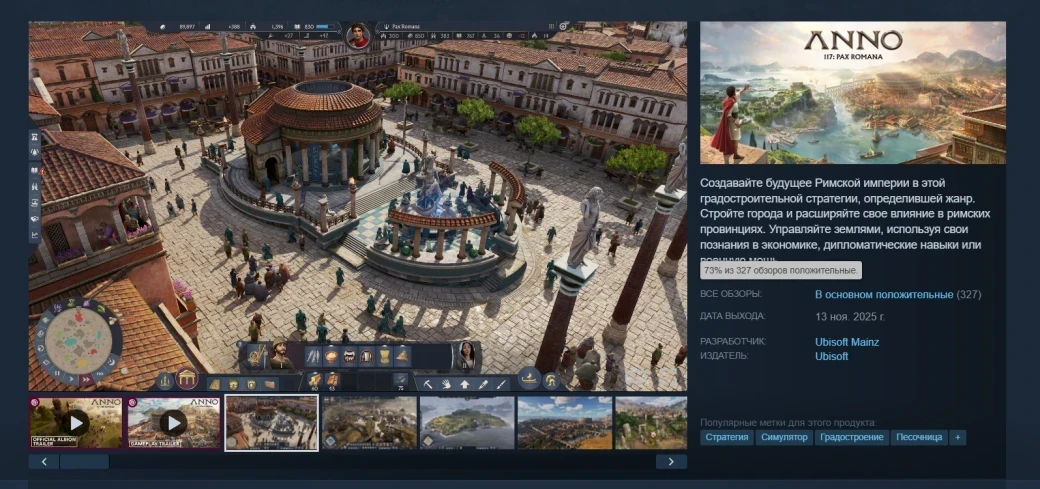 Главная » Статьи » Anno 117: Pax Romana получила «в основном положительный» рейтинг в Steam