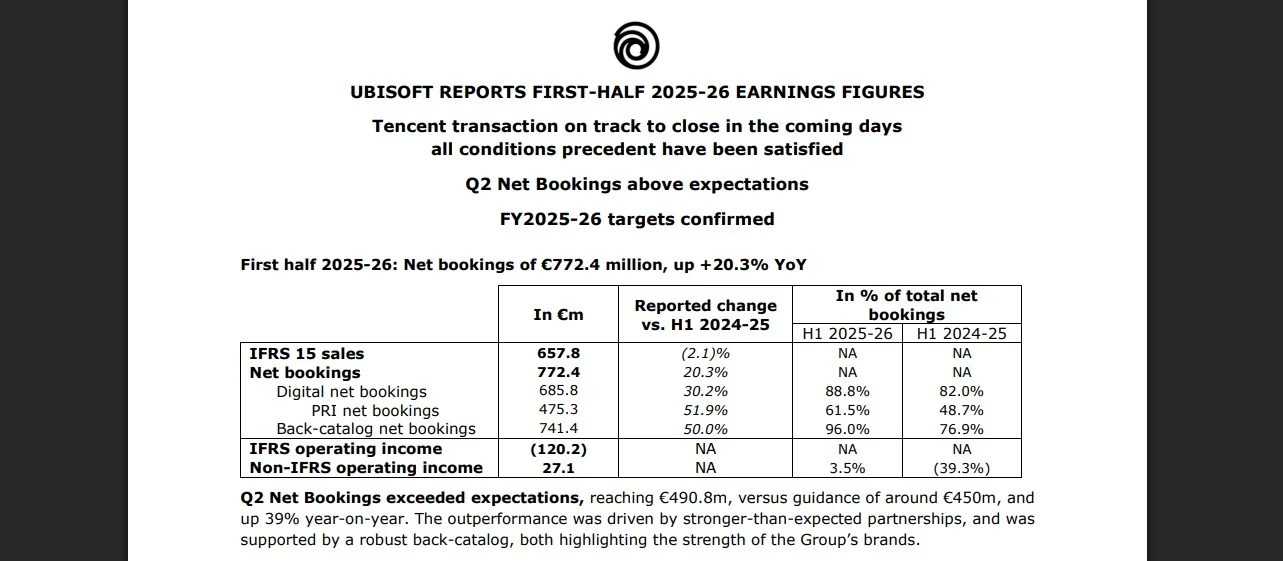 • на четвёртый квартал 2025-26 финансового года запланированы релизы Prince of Persia: The Sands of Time (2026), Rainbow Six Mobile, The Division Resurgence и ещё одной неанонсированный игры.