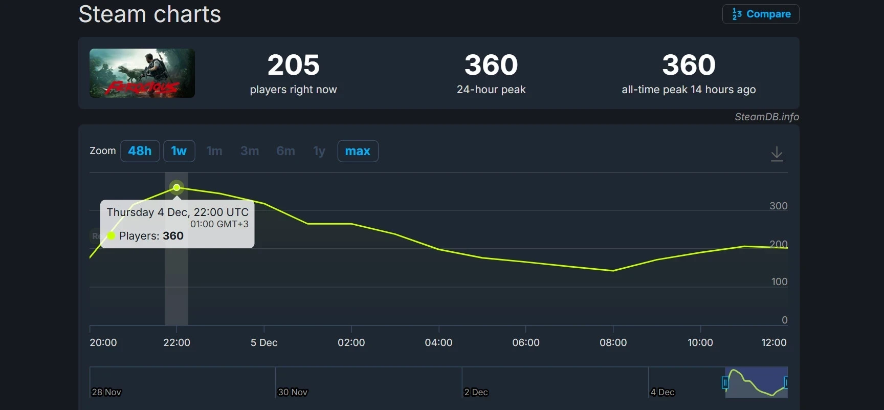Пиковый онлайн Ferocious составил 360 человек. Бесплатная демоверсия в своё время привлекла более 800 игроков.