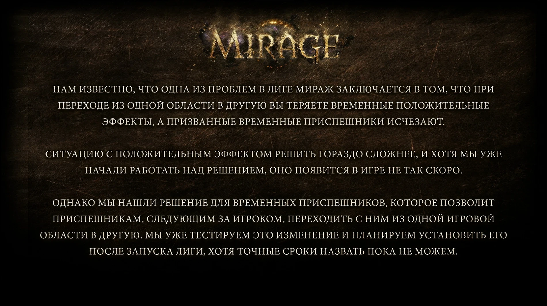 А вот часть с пропажей приспешников продвигается лучше. В GGG уже тестируют соответствующее изменение, чтобы установить его после запуска лиги. Увы, пока без точных сроков.